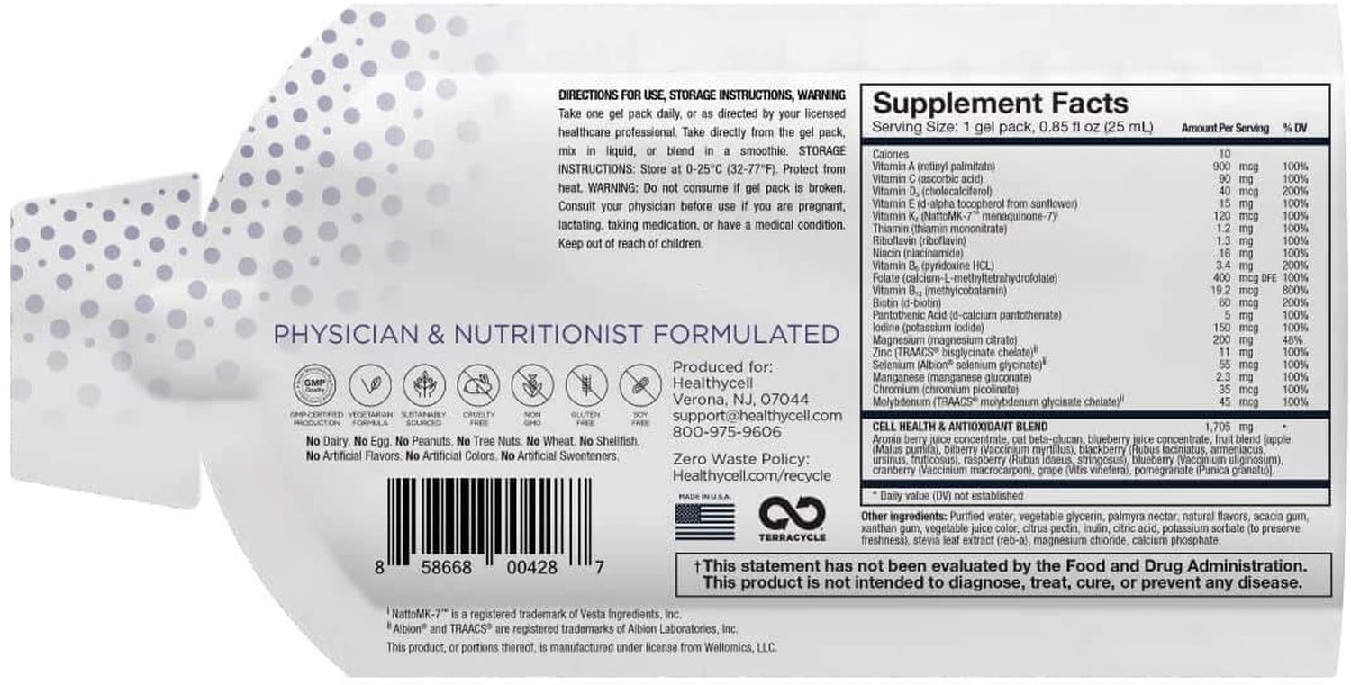 Healthycell's Bioactive Multivitamin includes the complete spectrum of ultra absorbable, essential vitamins and minerals, plus phytonutrients and antioxidants, to ensure a daily nutrient foundation for optimal health. *
