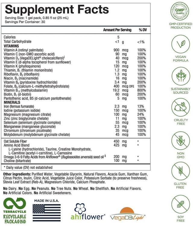 - SERVING SIZE: 1 Gel Pack, 0.85 fl oz (25 ml); 30 servings per container