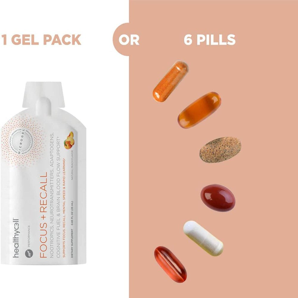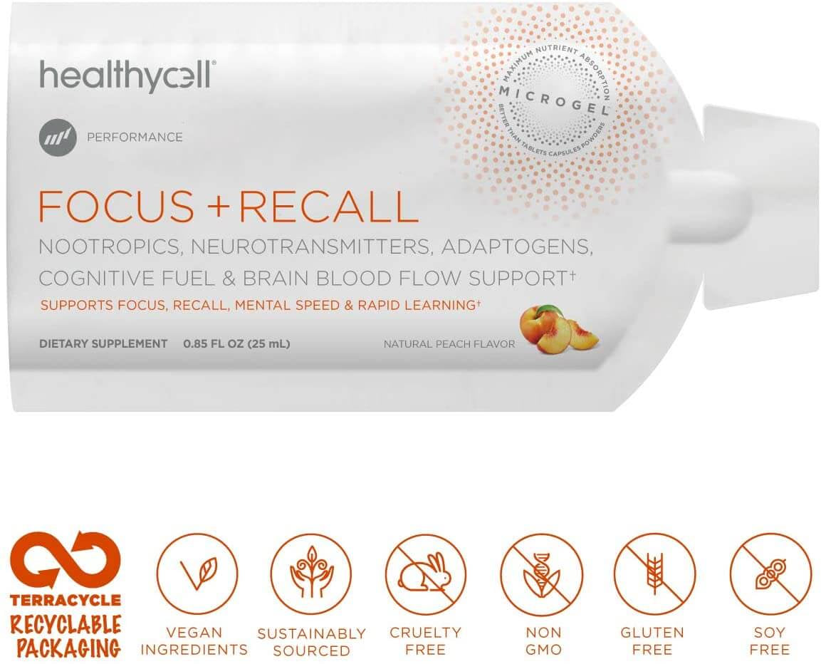 Healthycell Focus and Recall Brain Boost Nootropic Supplement for Adults, Supports Brain Health, Liquid Gel Packs (30 Count)