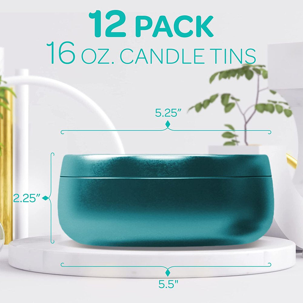 Hearts & Crafts Candle Tin Jars - 16Oz Teal Metal Tin Cans with Lids, 12-Pack - for Small Tins for Candle Making, Arts & Crafts, Storage, Gifts, and More