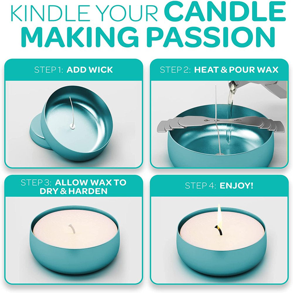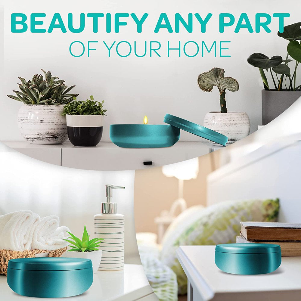 - ELEGANT CANDLE TIN CANS: Add a touch of sparkle to your living space with our painted metal candle containers that come in classic hues like minimalistic Teal. Use these metal tins to keep your objects without sacrificing aesthetics neatly or to spruce up your DIY candle making projects. Who says functional meant boring and tasteless?