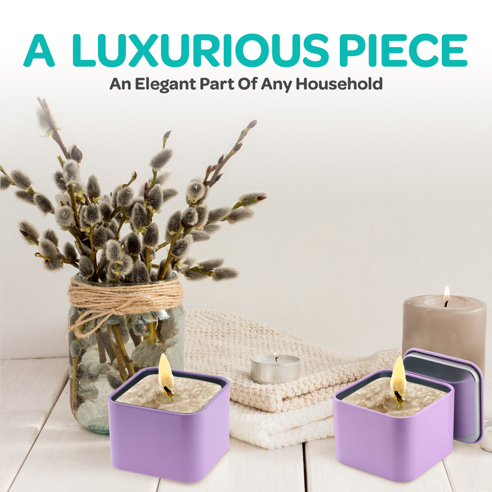Hearts & Crafts Square 24 Tin Candle Tins with Lids for Candle Making - 8Oz - Lavender
