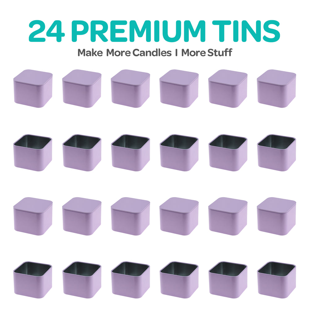 Hearts & Crafts Square 24 Tin Candle Tins with Lids for Candle Making - 8Oz - Lavender - 8Oz / Lavender is backordered and will ship as soon as it is back in stock.