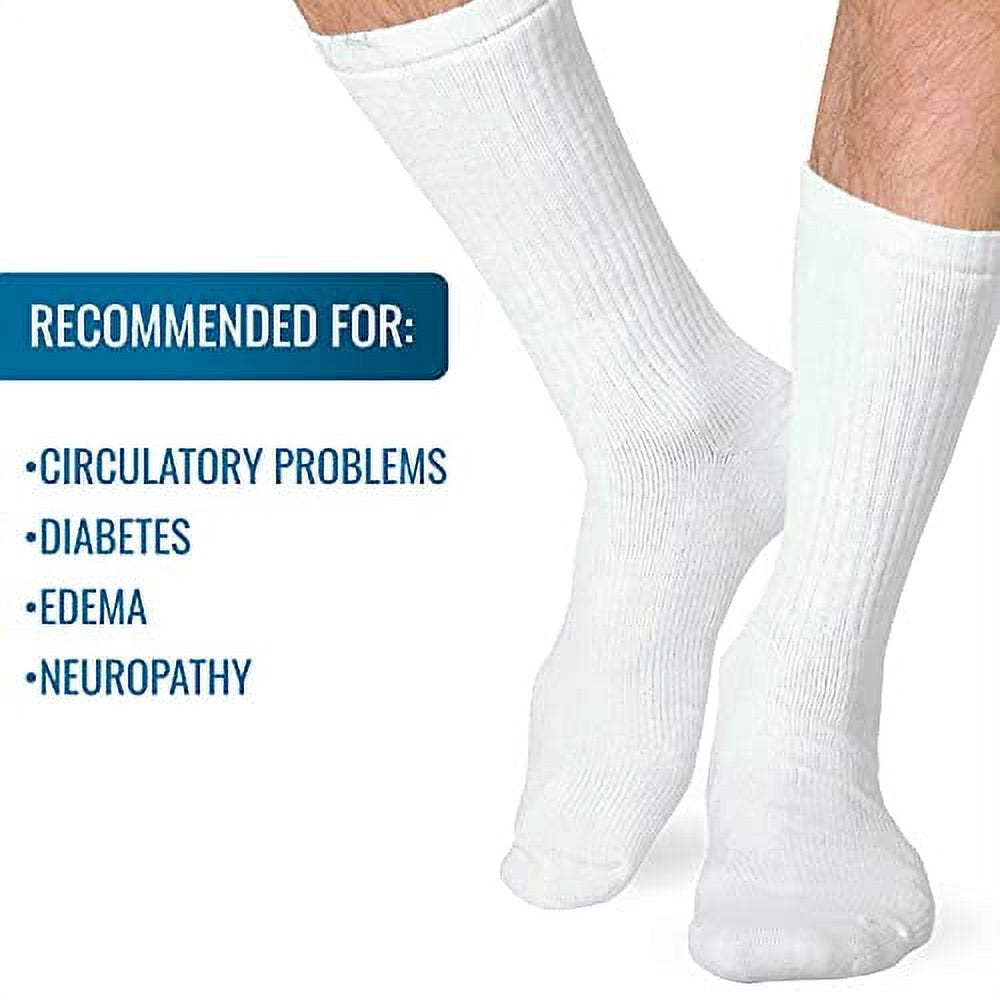 Heelbo Diabetic Socks for Sensitive Feet Without Elastic for Men and Women for Circulatory Problems, Edema and Neuropathy, Mild Compression, White, Large