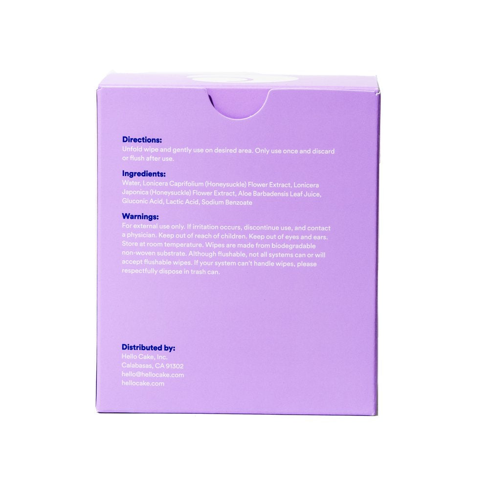 Hello Cake Natural Sex Wipes are the perfect cleanup wipe for that pre-or-post-sex refresh. Our 100% natural formula is infused into flushable and biodegradable wipes, so you can practice good sexual hygiene. We made sure they’re pH-balanced and added honeysuckle for skin softness. Our wipes are great for all around clean up! Whether you’ve just finished having some hot rounds of sex, need a post-gym refresher, or menstruating & need a quick clean up – Natural Sex Wipes have your back (and your front)! Individually packaged and oh so cute! Keep them with you where you need them most. Whether that’s in your nightstand, in the car, or in your bag for a quick fun quickie.