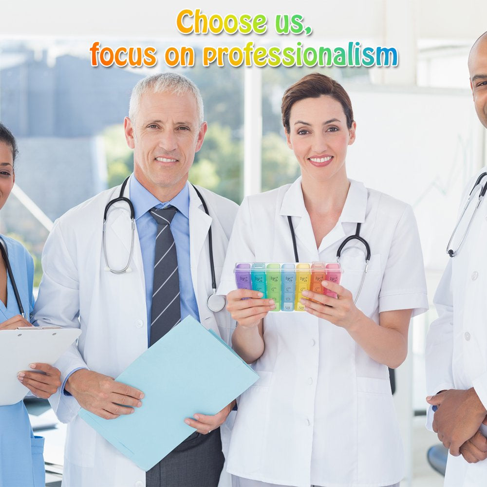 - BPA Free Material: This pill box is made of BPA free food grade material, which is very safe, you don't need to worry when storing multiple pills. With the clear plastic cap, the pills in each dose can be easily distinguished without opening the cap.