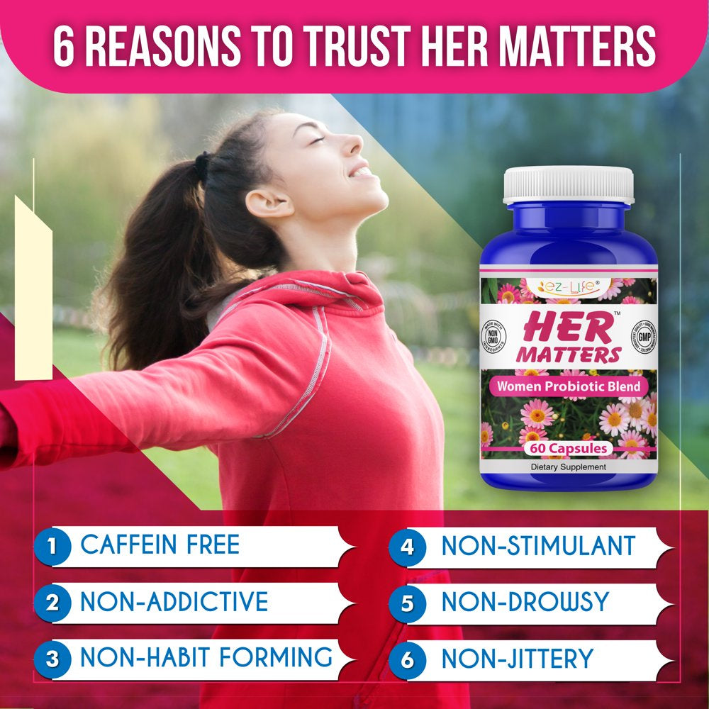 Her Matters Probiotic Supplement for Women Support Urinary Tract Health, Feminine Odor, Balance Ph, & Restore Proper Gut Flora 60 Capsules