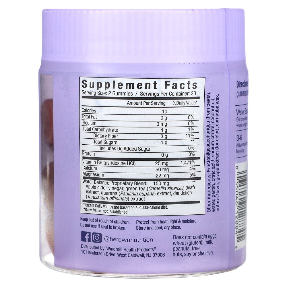 Slim and tone. If you’re looking to reduce bloat or excess water weight after a big meal or in advance of that special day, Her Own Debloat Gummies are just what the doctor ordered! Our proprietary Water Balance Blend of apple cider vinegar, green tea extract, guarana extract and dandelion extract can help you shed excess water weight and give you a pre-event energy boost.