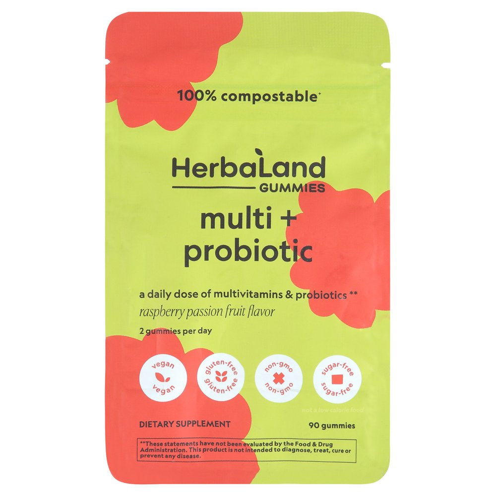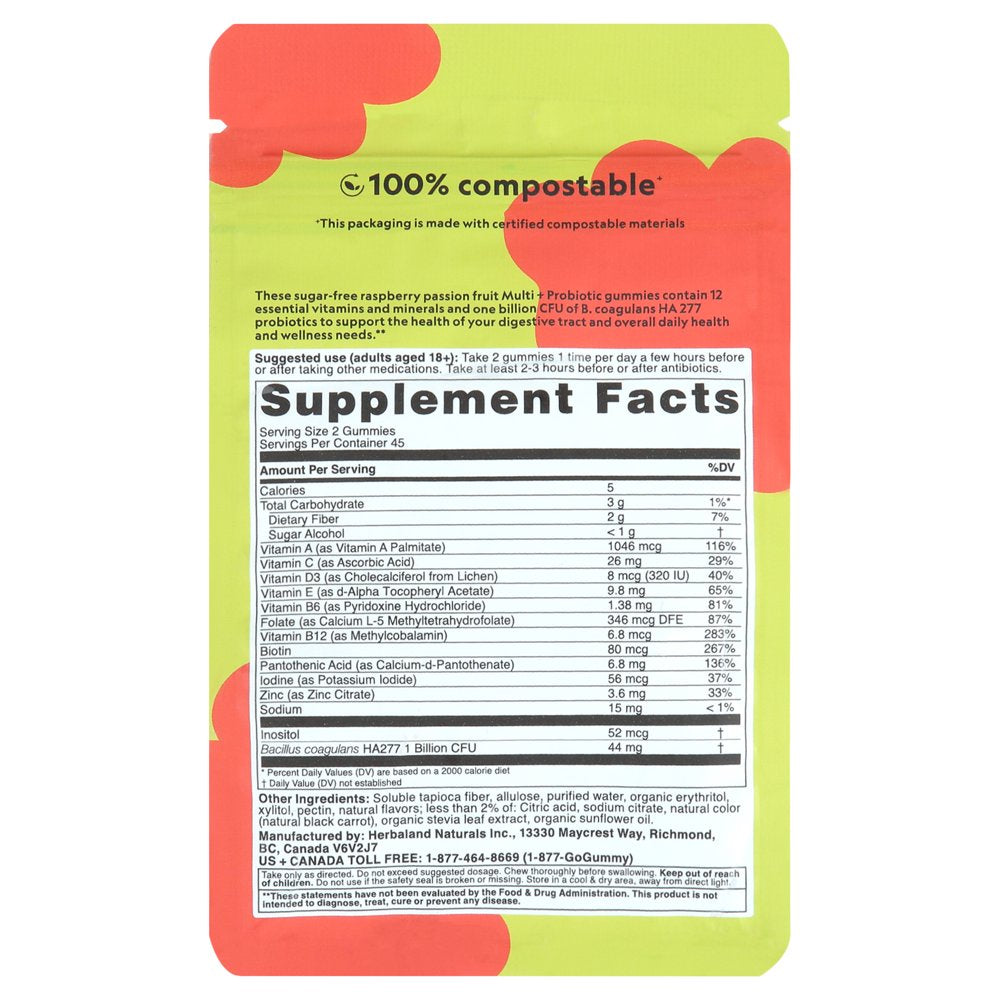 Herbaland - Multivitamin & Probiotic Gummies for Adults - Vegan Vitamin Supplement, Raspberry Passion Fruit Flavor