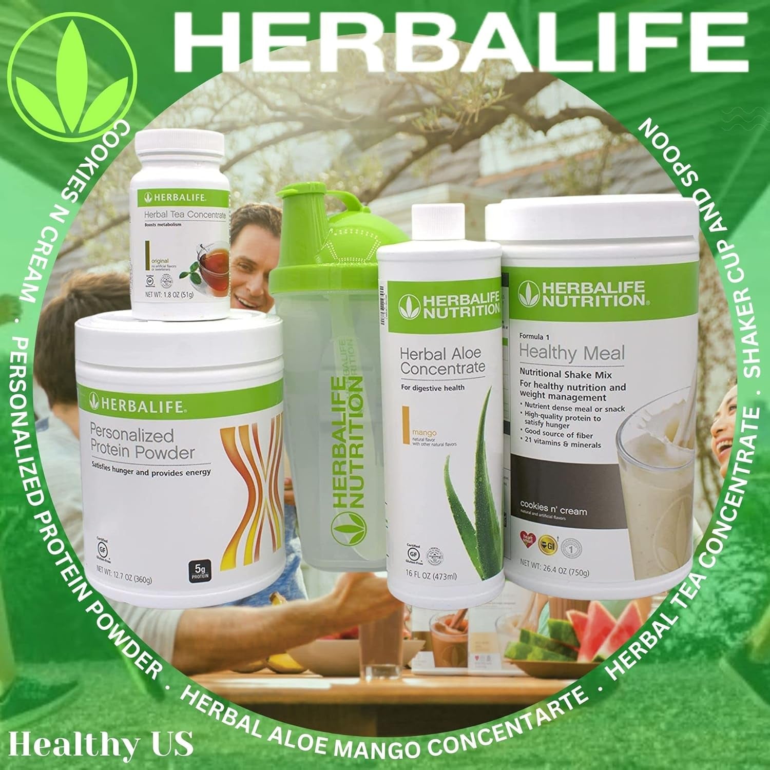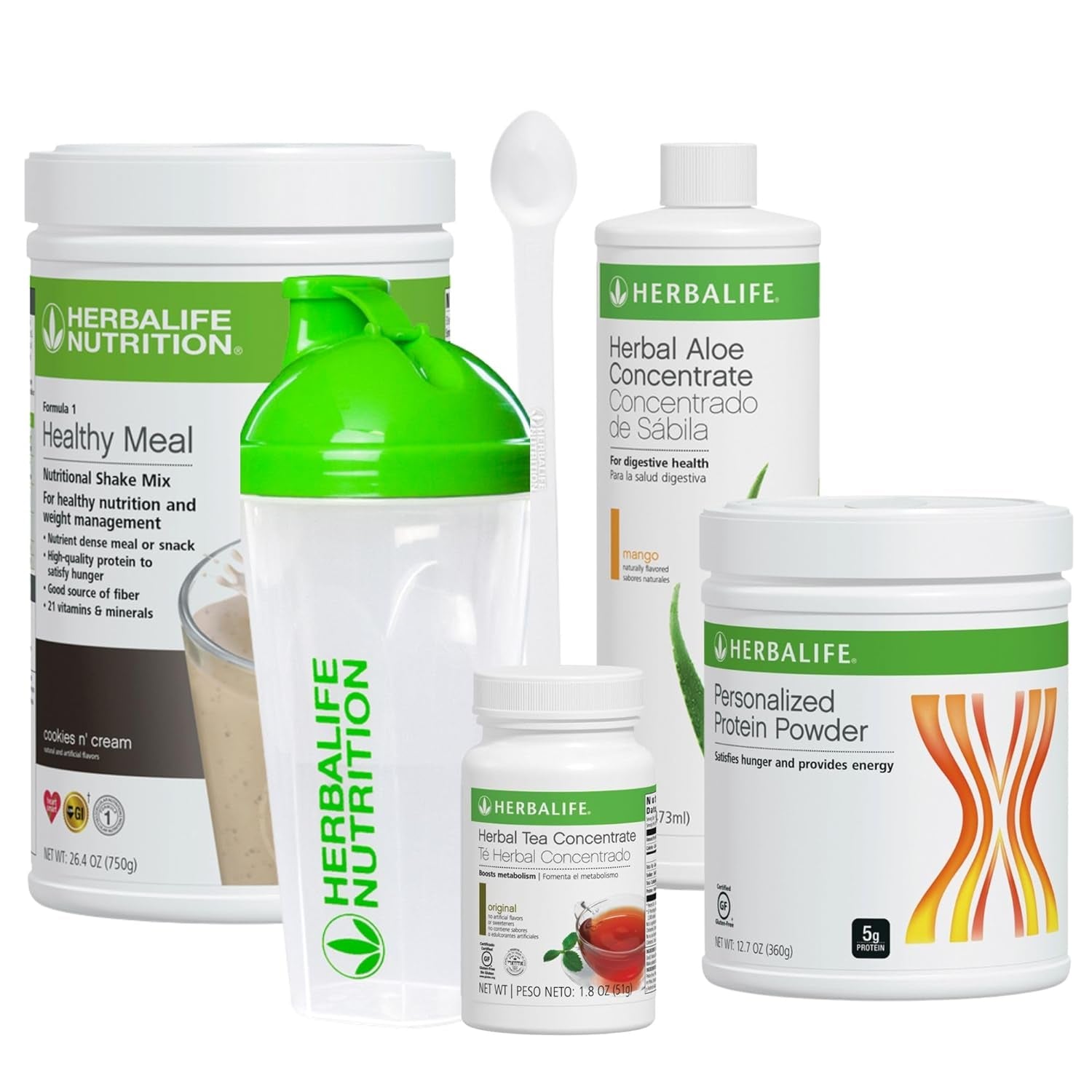 HERBALIFE COMBO FIVE FORMULA 1 Healthy Nutritional Shake Mix (Cookies and Cream 750G)-Herbal ALOE CONCENTRATE PINT 473Ml-Personalized PROTEIN POWDER 360G-Herbal TEA CONCENTRATE 51G with SHAKER CUP and SPOON