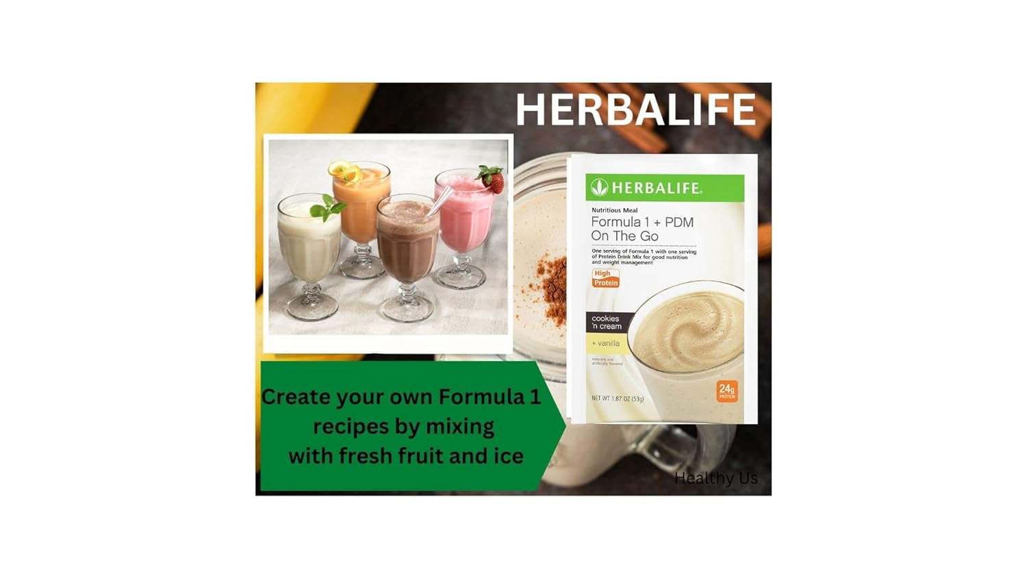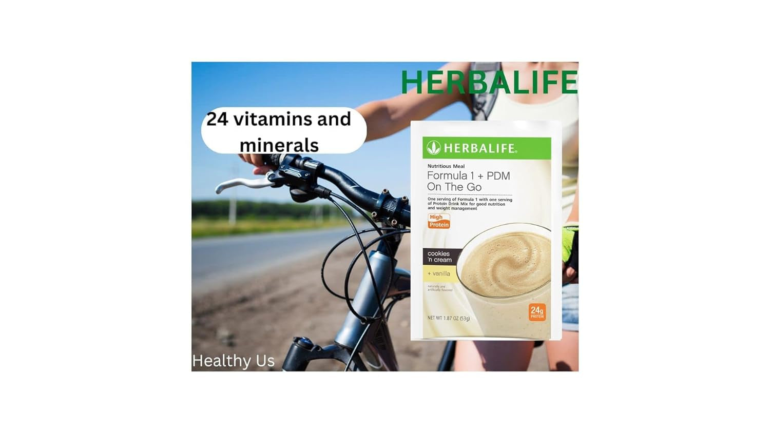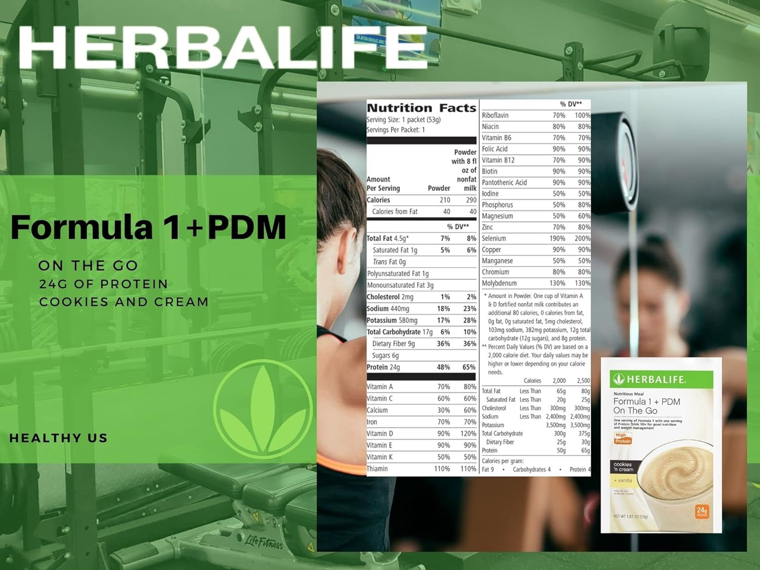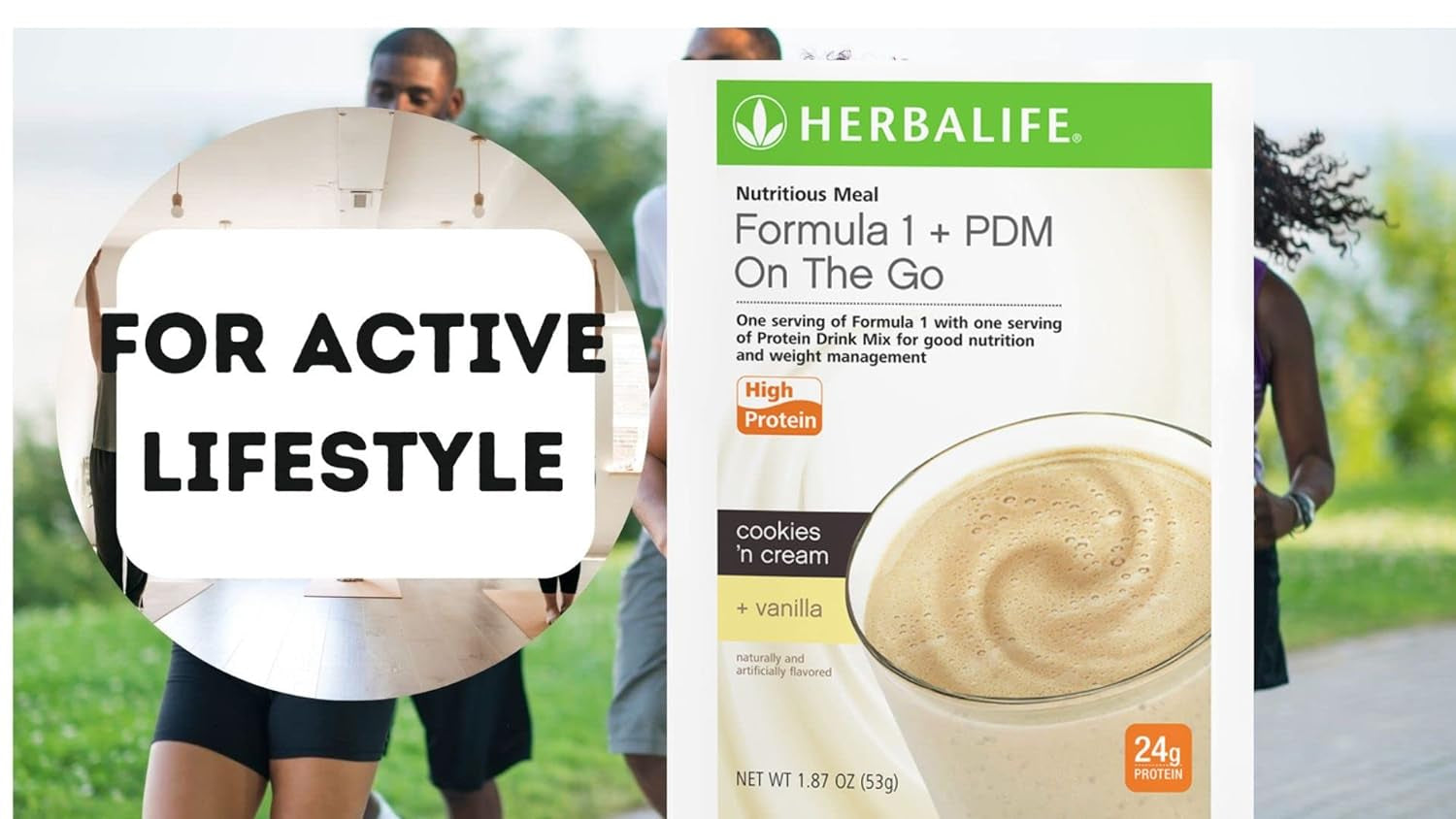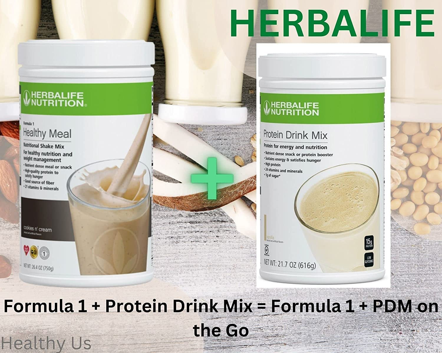 Herbalife Formula 1 + PDM on the Go: 24G of Protein 7 Packets per Box (Cookies and Cream + Vanilla), Protein for Energy and Nutrition, Sustain Energy and Satisfy Hunger