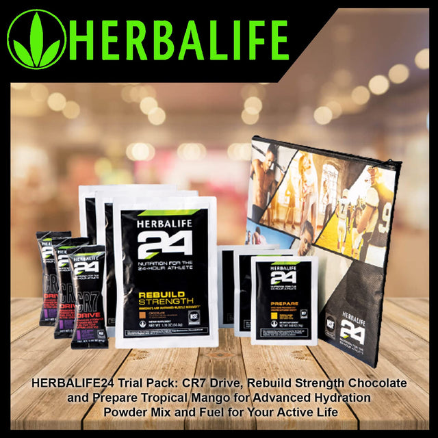 Herbalife24 Trial Pack: Cr7 Drive (3), Rebuild Strength Chocolate (3) and Prepare Tropical Mango for Advanced Hydration Powder Mix and Fuel for You Active Life (3) is backordered and will ship as soon as it is back in stock.