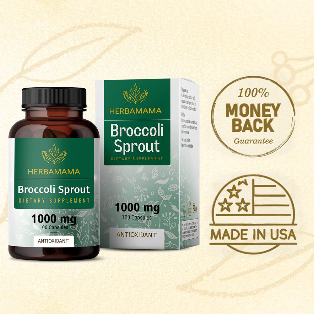HERBAMAMA Broccoli Sprout Extract Capsules - Sulforaphane Supplement, 100 Veggie Caps