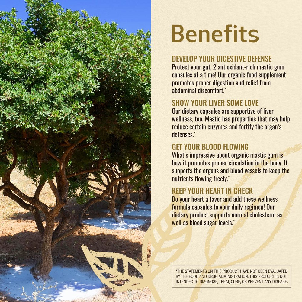 DEVELOP YOUR DIGESTIVE DEFENSE - Protect your gut, 2 antioxidant-rich mastic gum capsules at a time! Our organic food supplement promotes proper digestion and relief from abdominal discomfort.