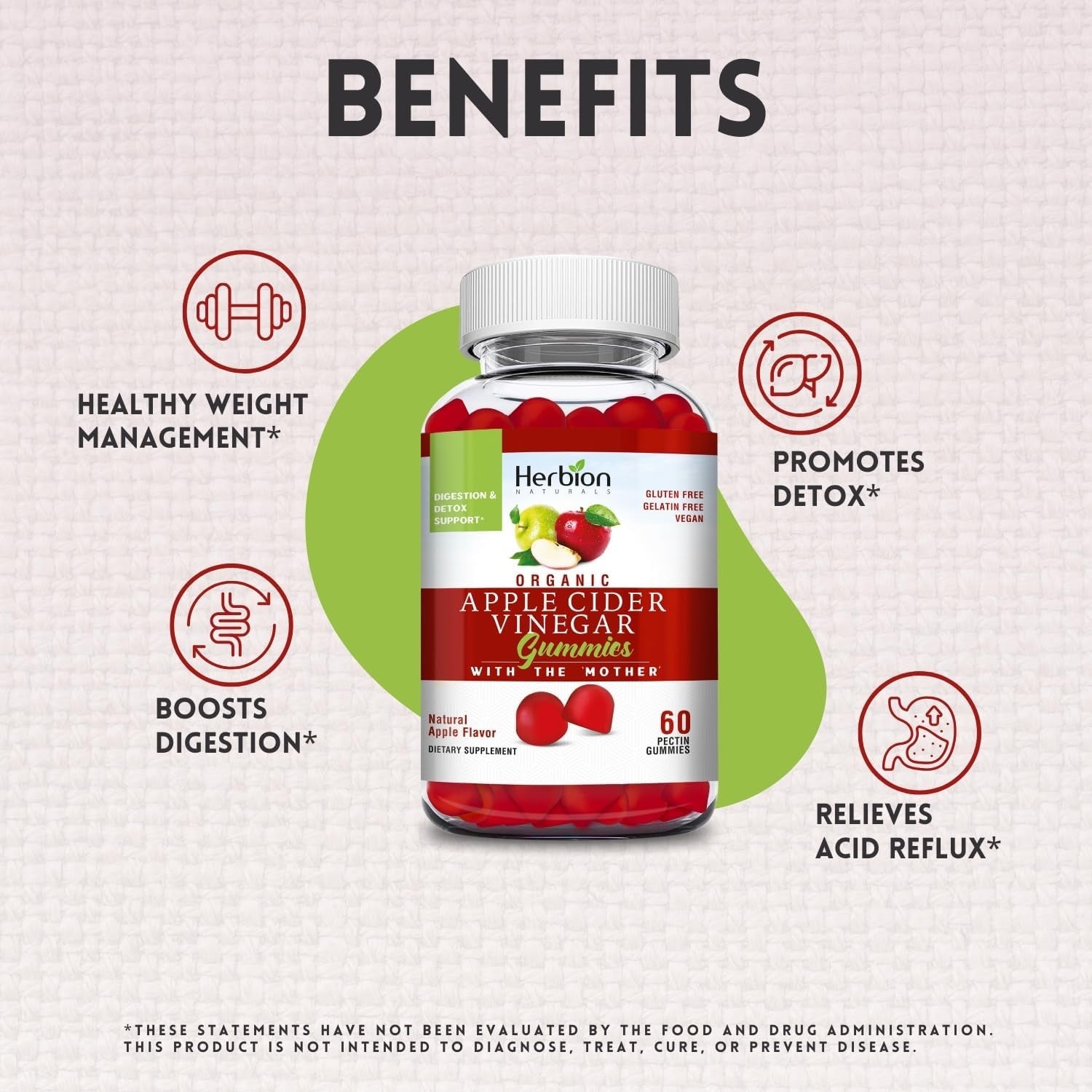 - BETTER GUT HEALTH: USDA Certified Organic, Herbion Apple Cider Vinegar Gummies are packed with the nourishment of Apple Cider Vinegar with the “Mother” to promote healthy digestion and detoxification.