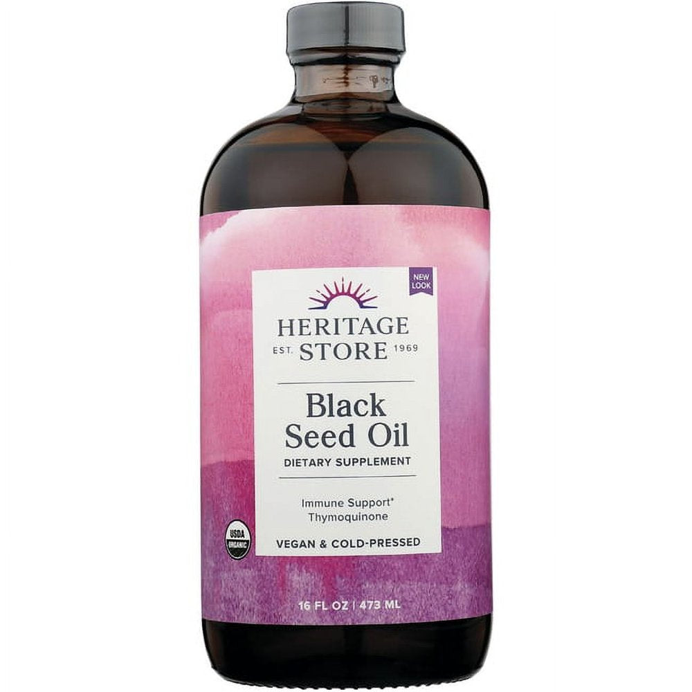 Heritage Store Black Seed Oil, 100% Pure Virgin, Organic, Cold Pressed 8 Fl Oz (16 Fl Oz)