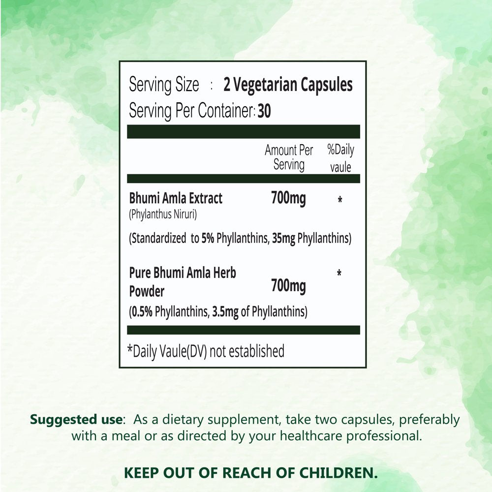 High Potency Bhumi Amla (Phylanthus Niruri) - 700 Mg per Vegetarian Capsule with Standardized Extract of 5% Phyllanthins for Liver Cleanser, Gall Bladder Support and Stone Breaker- 1 Months Supply
