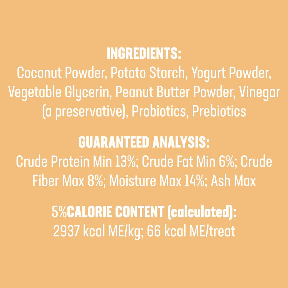 Yogurt Sticks are a health and wellness treat for dogs. These health-conscious coconut & yogurt treats are loaded with Prebiotics and Probiotics that strengthen your pup's gut health and supports building a balanced digestive system. They are made with the finest natural ingredients, no artificial flavors or preservatives, and are lactose, grain, corn, soy, and gluten-free. These treats are as nutritious as they are tasty.