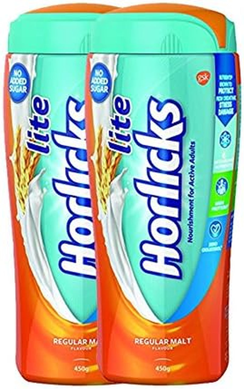 Horlicks Lite - Health and Nutrition Drink (Regular Malt) 450Gm Pet Jar Combo of 2, 450 G (Pack of 2)