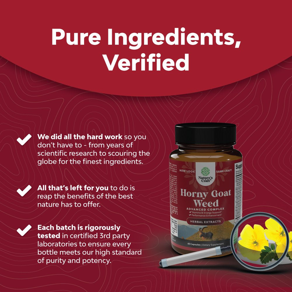 - Unlock your True Potential - Our horny goat weed with maca root capsules for men make a great energy supplement to help you work and perform your best thanks to increased flow energy and strength