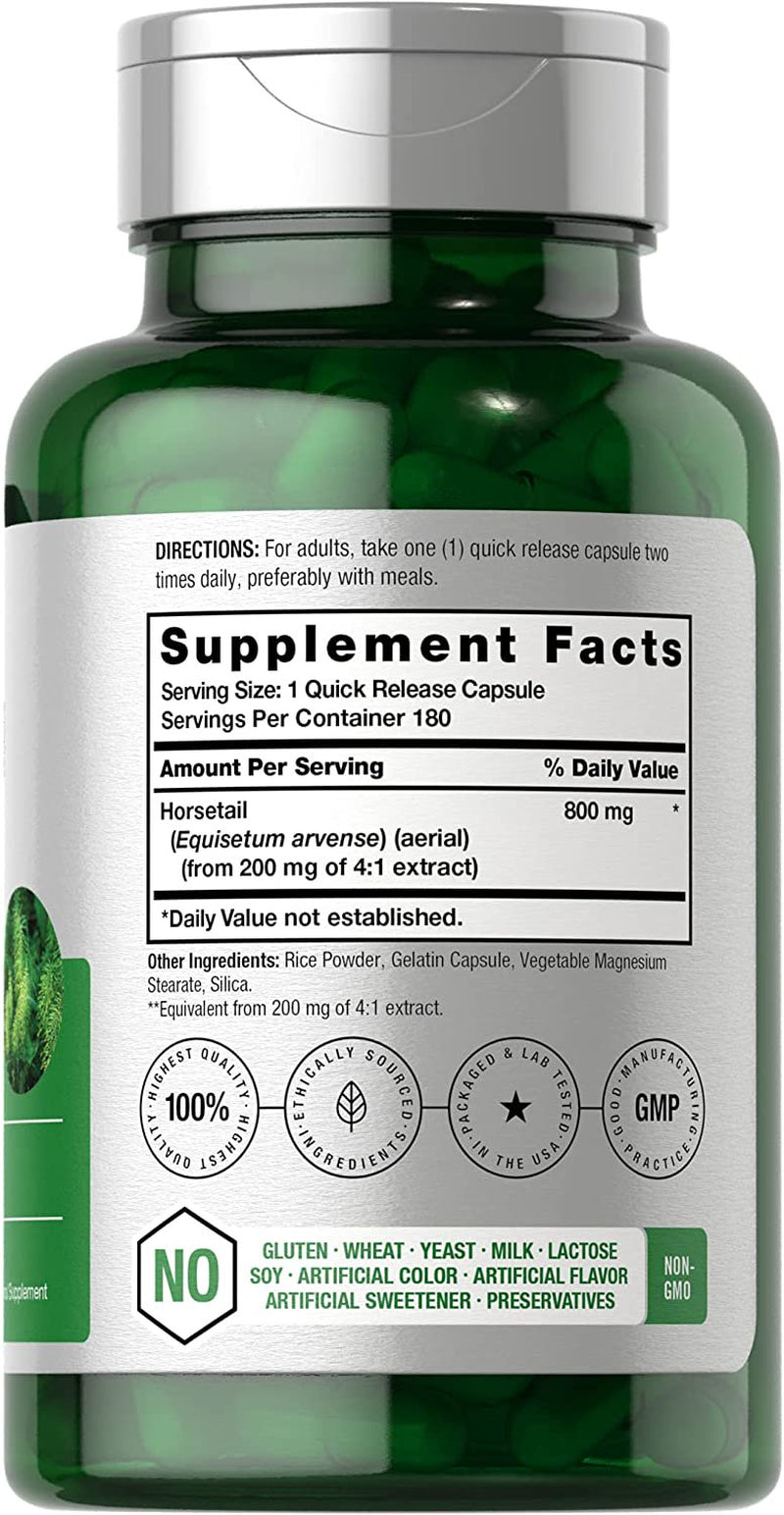 - CONVENIENT FORM: Each capsule delivers the equivalent of 800mg of horsetail herb in a potent extract