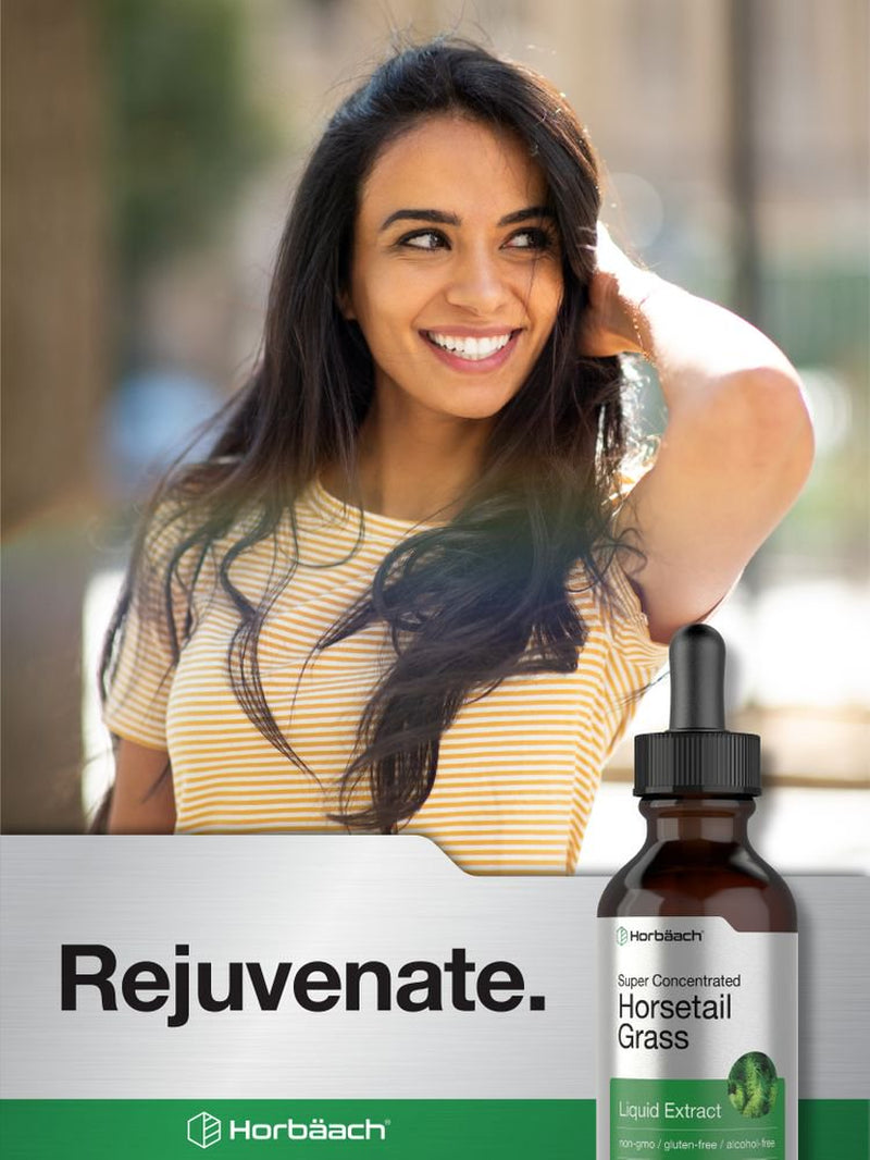 What is Horsetail? Horsetail (Equisetum Arvense) is an herb from the Equisetaceae family that is a potent source of Silica and helps support healthy hair, skin and nails.* This Herbaceous Perennial has thrived in the Northern Hemisphere for centuries dating back to Ancient Greece. It grows in moist, fertile soils and produces evergreen shoots that are rich in minerals. How to get Horsetail: This natural beauty ingredient is offered in a variety of different product forms. The most common include: pills, powder, capsules, oil, dried tea bags, herbal extracts and external beauty products like shampoo, hair conditioner and cream. However, not all products use quality sourcing, and many common brands include preservatives and other fillers. What's the best way to get Horsetail Grass in the most convenient form, from elite sourcing? About Horsetail Extract: Horbaach's Gluten Free and Alcohol-Free liquid extract is carefully crafted without artificial color, sweeteners or preservatives. Our vegetarian formula naturally contains the potent plant compound, Silica, an essential compound for beauty.* Each tincture is carefully examined to ensure purity, potency and excellence. Simply add drops once a day to water and notice the difference with our premium Horsetail supplement!
