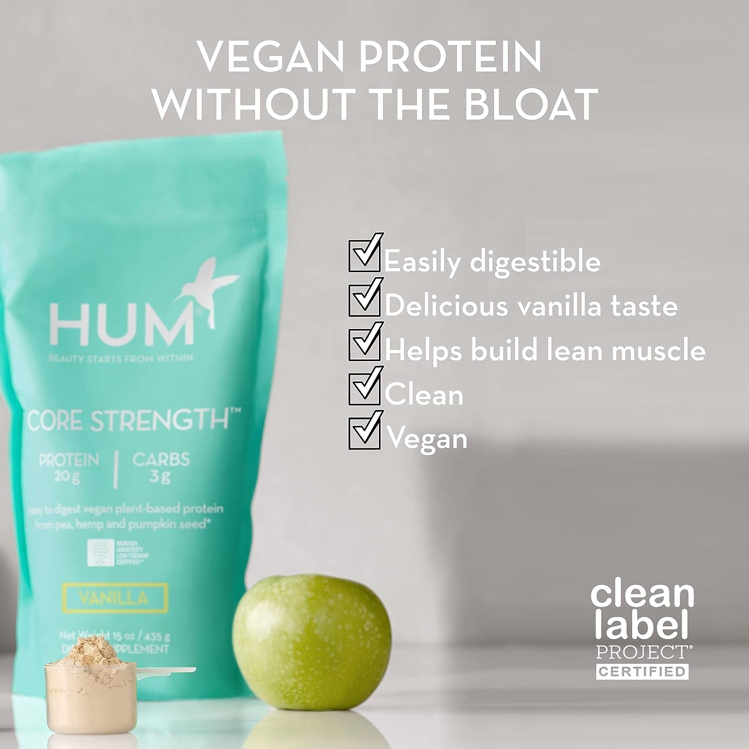 HUM Core Strength Vanilla Protein Powder - Digestion Friendly Vegan Plant Protein for Shakes (15 Servings)