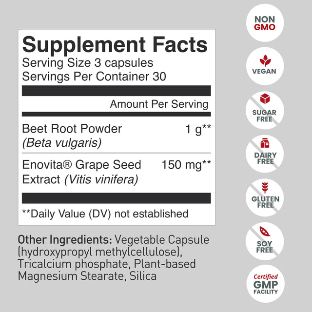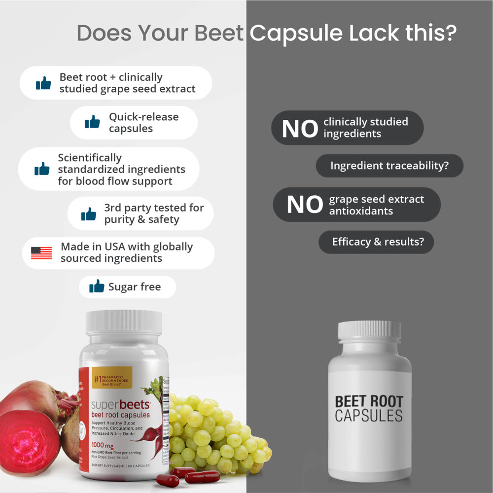 - Support Healthy Blood Pressure & Energy: Powered by clinically researched French Grape Seed Extract, the unique antioxidant compound in SuperBeets Beet Root Capsules delivers nearly 2x MORE effective blood pressure support than a healthy lifestyle alone.*