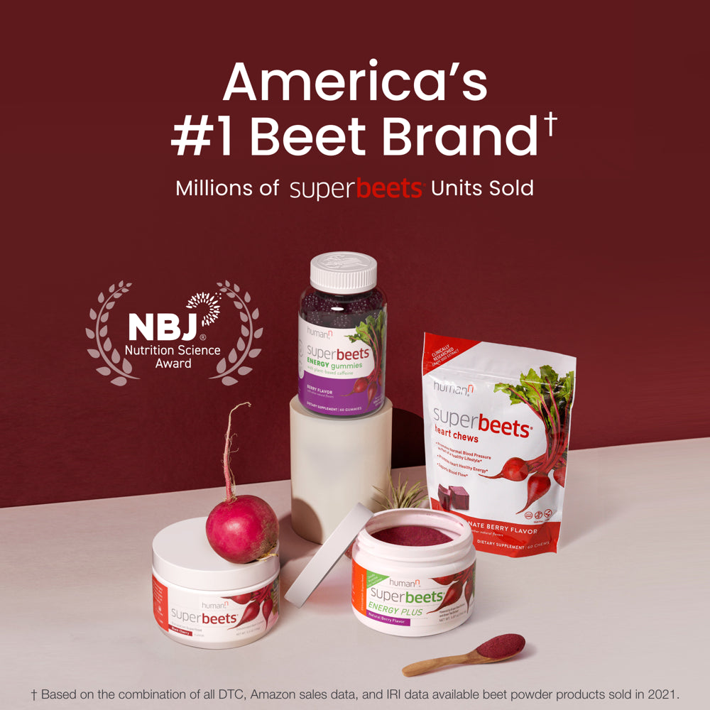 SuperBeets Beet Root Powder Capsules by HumanN are an easy and convenient way to support healthy blood pressure, help increase Nitric Oxide production, promote heart-healthy energy, support circulation and blood flow. Packed with 1000mg USA-grown beet root powder and 150mg of clinically studied French Grape Seed Extract, SuperBeets Beet Root Capsules work hard at supporting your heart health. They make a great alternative to beet juice, regular beets, and energy drink powder! No caffeine, no stimulants, sugar free. SuperBeets Beet Root Superfood Powder Capsules help you support healthy blood pressure and increase Nitric Oxide so you can take on life’s challenges. The clinically studied antioxidants in SuperBeets Beet Root Powder Capsules are also found in our famous SuperBeets Soft Chews, and they make the perfect pair in your heart health support routine. Remember, not all beets are Super Beets!