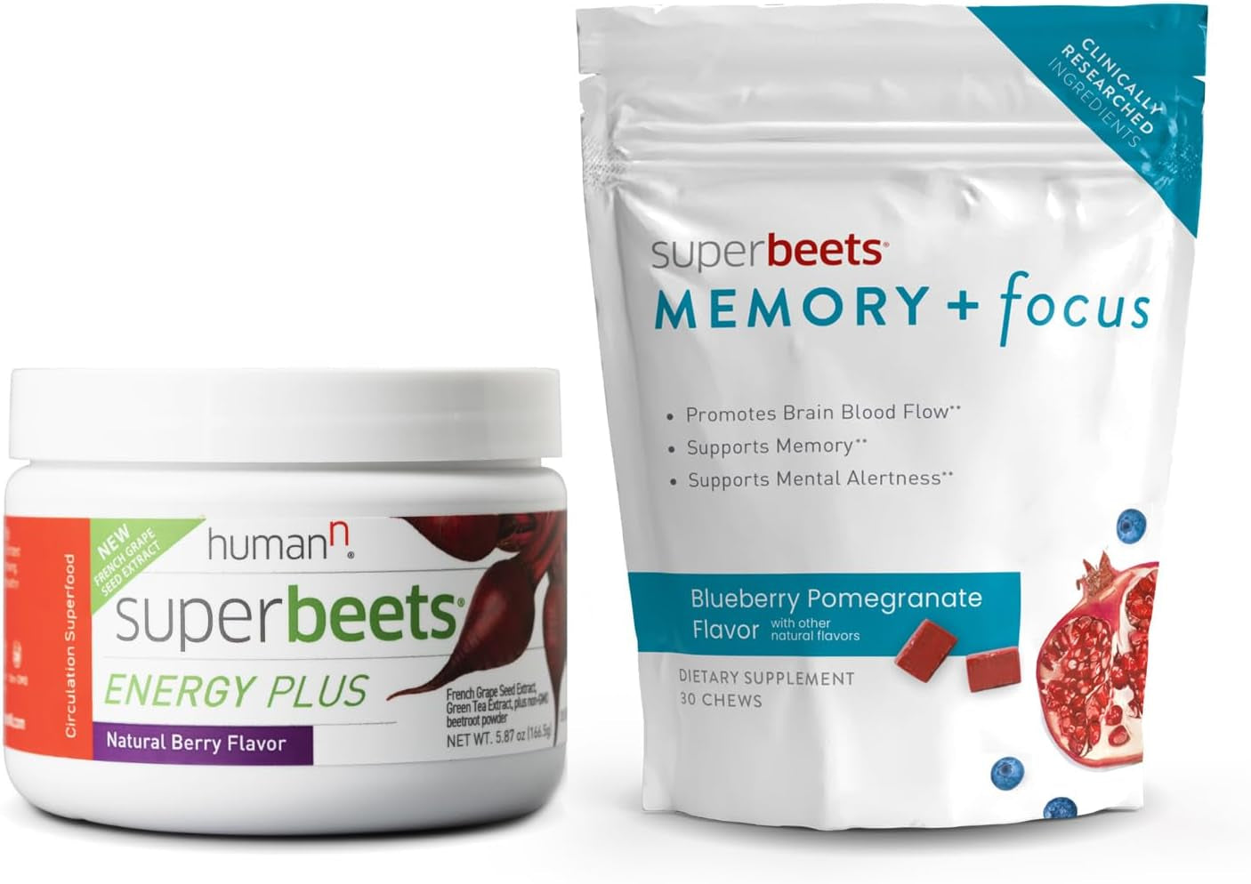 HumanN SuperBeets Energy Plus & Memory + Focus Chews Bundle