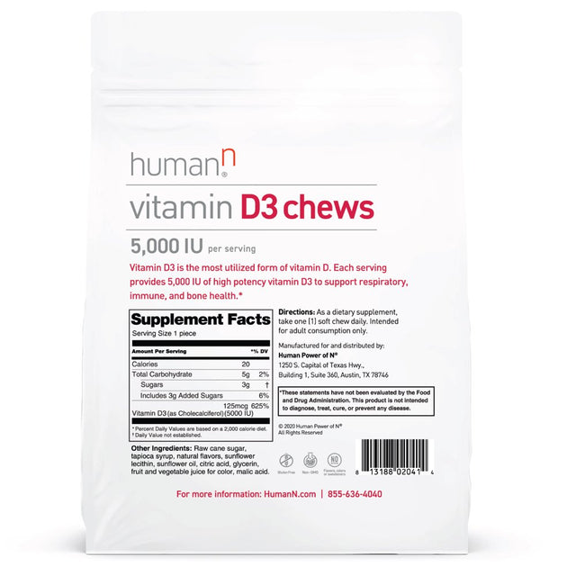 - Convenient and easy to take on-the-go - HumanN D3 Soft Chews provide 5,000 IUs of high-potency vitamin D3, the most active and absorbable form of vitamin d, into individually wrapped chews, making it easy for you to take them on-the-go
