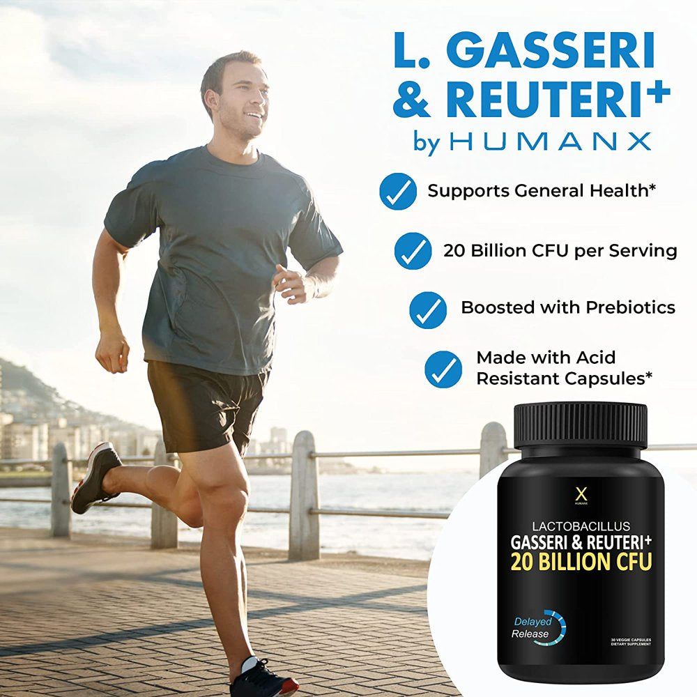Humanx Lactobacillus Gasseri & Reuteri is a premium blend containing an unmatched 20 billion CFU per serving. It's stacked with a comprehensive organic matrix of prebiotics and punicaligans from Indian Pomegranate that work as your proviotics fuel source, so they can function optimally. Each serving is contained in acid resistant capsules to help shuttle the probiotics to their destination.*