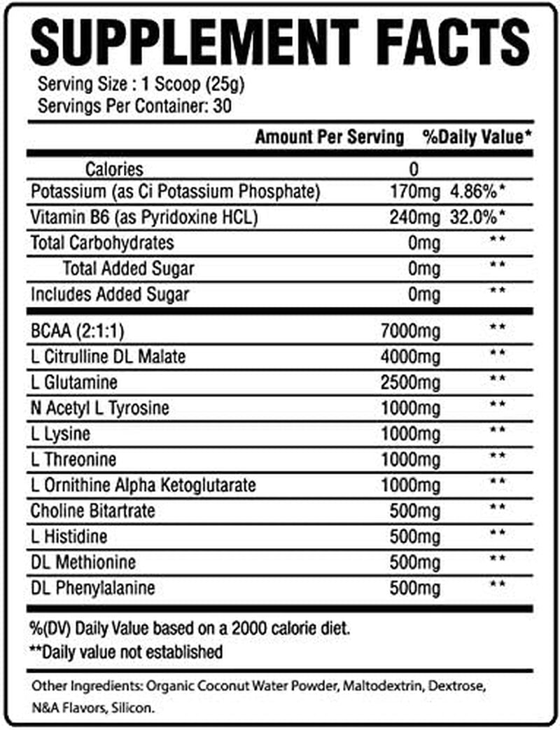 BEST TASTING EAA/BCAA's on the Market! Ranked #3 on supplementreviews.com Mind Muscle Nutrition is setting the new standards in Intra-Workout Supplementation. We include a full spectrum of ingredients so you can push hard during your workouts. We are not like other companies and only put branch chain amino acids in, we have you covered on other avenues as well! So you get the most bang for your buck! Increased Hydration Increase in Building Lean Muscle Increased Endurance Increased Strength Increased Focus Citrulline Malate - Potent vasodilator that helps push more blood and nutrients into the muscle. Sodium; Potassium - Important electrolytes that are lost during workouts, we included them to help replenish them so you can continue kicking ass during your workout. 2:1:1 BCAA Ratio- This is your basic branch chain amino acids, the building blocks of muscle, increased rate of protein synthesis, and increase in endurance. EAA's-Essential Amino Acids (EAA’s) are required in order to help build new muscle tissue and help with cell repair which occurs when muscles are recovering. They are “essential” because your body cannot produce them. L-Glutamine - A branch chain amino acid that is used to help with recovery, so you do not get as sore the next day and can crush tomorrows workout N-Acetly-L-Tyrosine- Compound used to help with overall mental focus to keep you in the zone while you are training Choline Bitartrate- Compound used to enhance mental focus, for that tunnel vision where all you care about is the weight Raw Coconut Water Concentrate - Increases hydration and endurance Directions: As a dietary supplement, take one (1) scoop with 14-16oz of water during workout on training days. New users may wish to assess tolerance with 1/2 scoop Price Plow Article: https://blog.priceplow.com/supplement-news/mind-muscle-hydra-focus