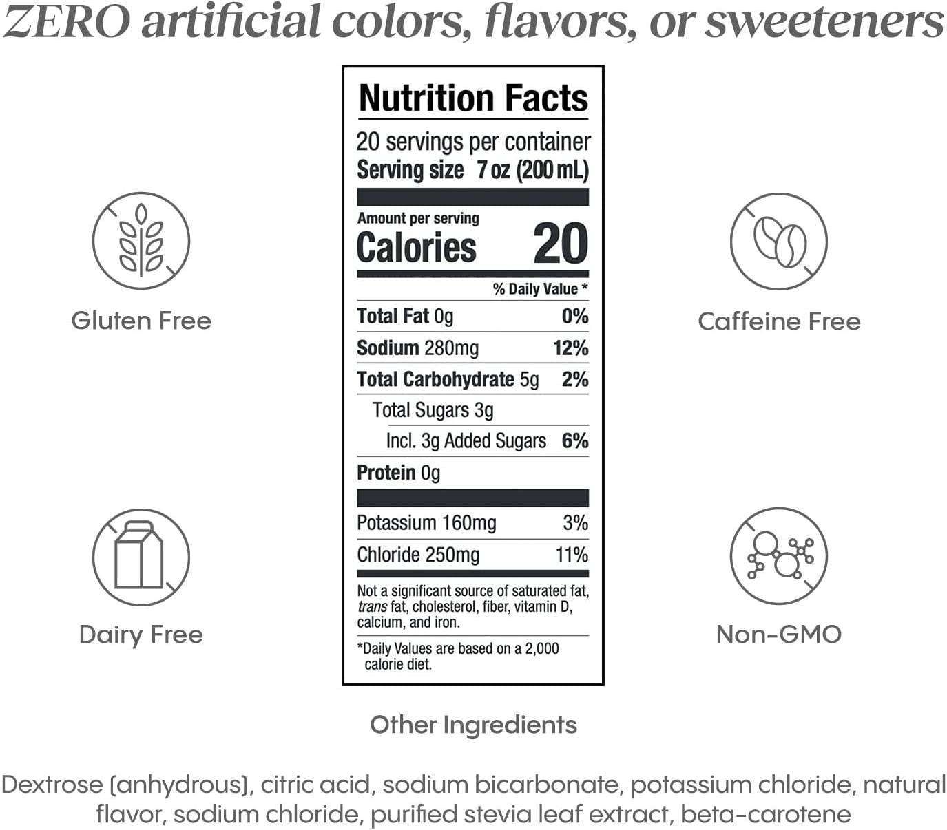 - LOW SUGAR: When it comes to rapid rehydration, glucose (sugar) is key. When combined with salt at the perfect ratio, glucose accelerates water and electrolyte absorption. But unlike sports drinks or electrolyte products, we use precisely the optimal amount for maximum absorption and not a gram more.