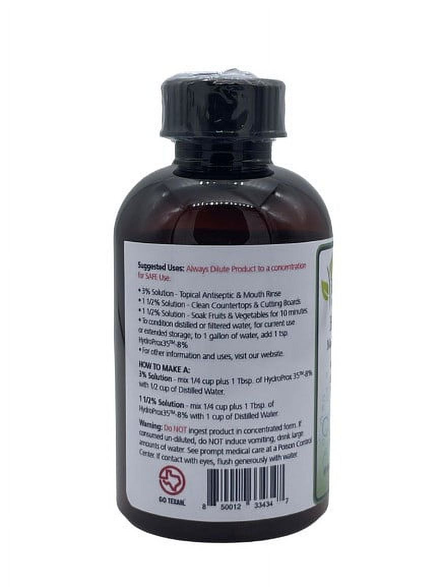 Hydroprox 35 - Pure Food Grade Hydrogen Peroxide - Diluted to 8% for Un-Restricted Shipping