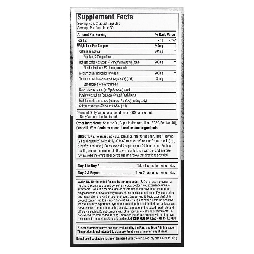 It’s time to put yourself first, and that means looking sexy and feeling confident. With Hydroxycut Black in your active lifestyle, taking control and getting real weight loss results has never been more convenient. You’ll get a powerful boost of on-the-go energy to help you tackle your day and conquer your goals with every dose. And with extreme sensory you can feel, you’ve never experienced anything quite like Hydroxycut Black. Get the weight loss benefits of a key ingredient researched to show results in two scientific studies. Subjects taking the key ingredient (C. canephora robusta) for 60 days lost an average of 10.95 lbs. versus the placebo group, which lost an average of 5.40 lbs. Both groups followed a low-calorie diet. In a separate 8-week study, subjects taking C. canephora robusta lost an average of 3.7 lbs. versus the placebo group, which lost 1.25 lbs. Both groups followed a calorie-reduced diet and performed moderate exercise.