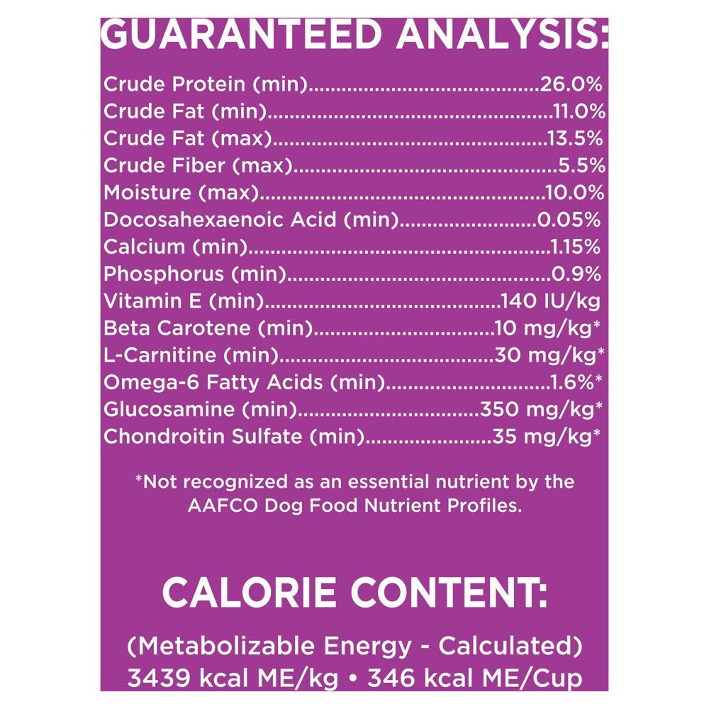 - No artificial preservatives or flavors (Trace amounts may be present due to potential cross-contact during manufacturing). Formulated for 7+ mature dogs.