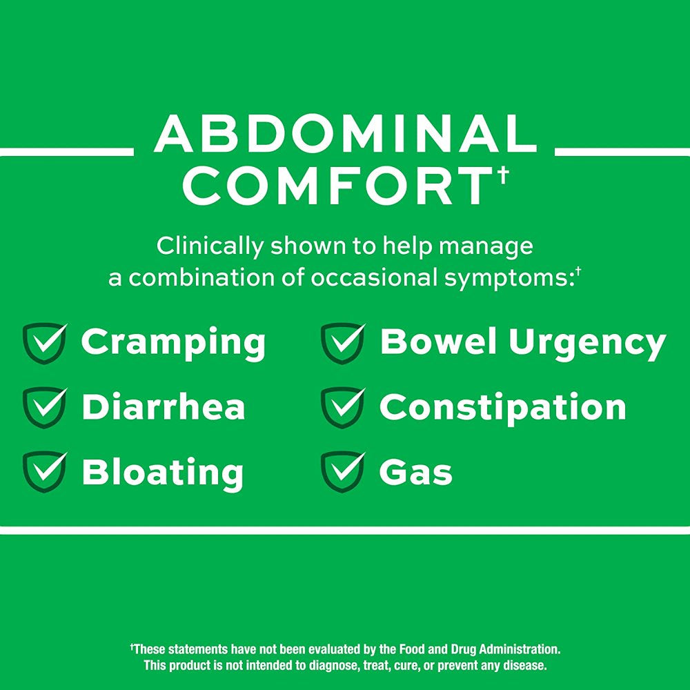 - Clinically shown to help manage a combination of occasional symptoms: cramping, bowel urgency, diarrhea, constipation, bloating, and gas†