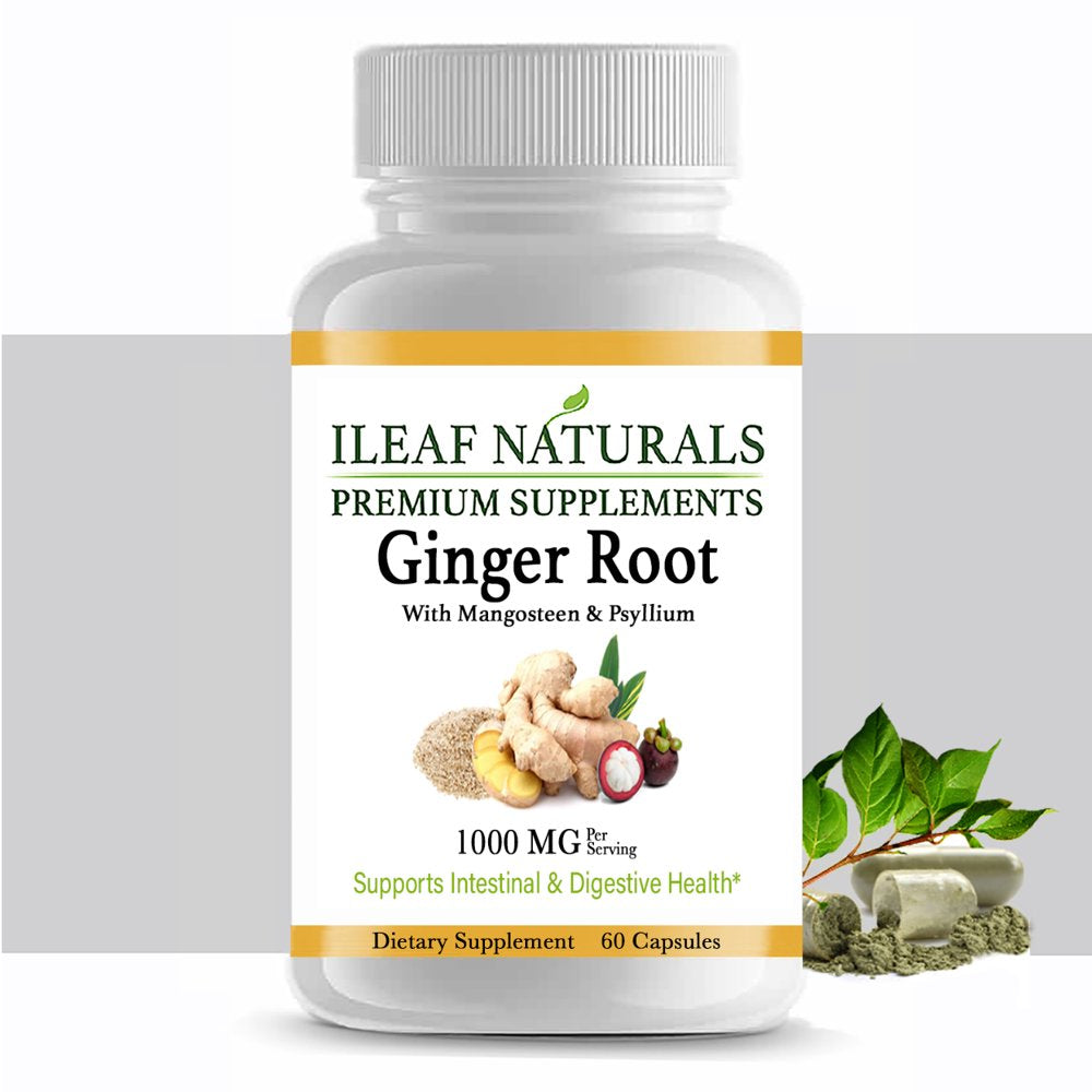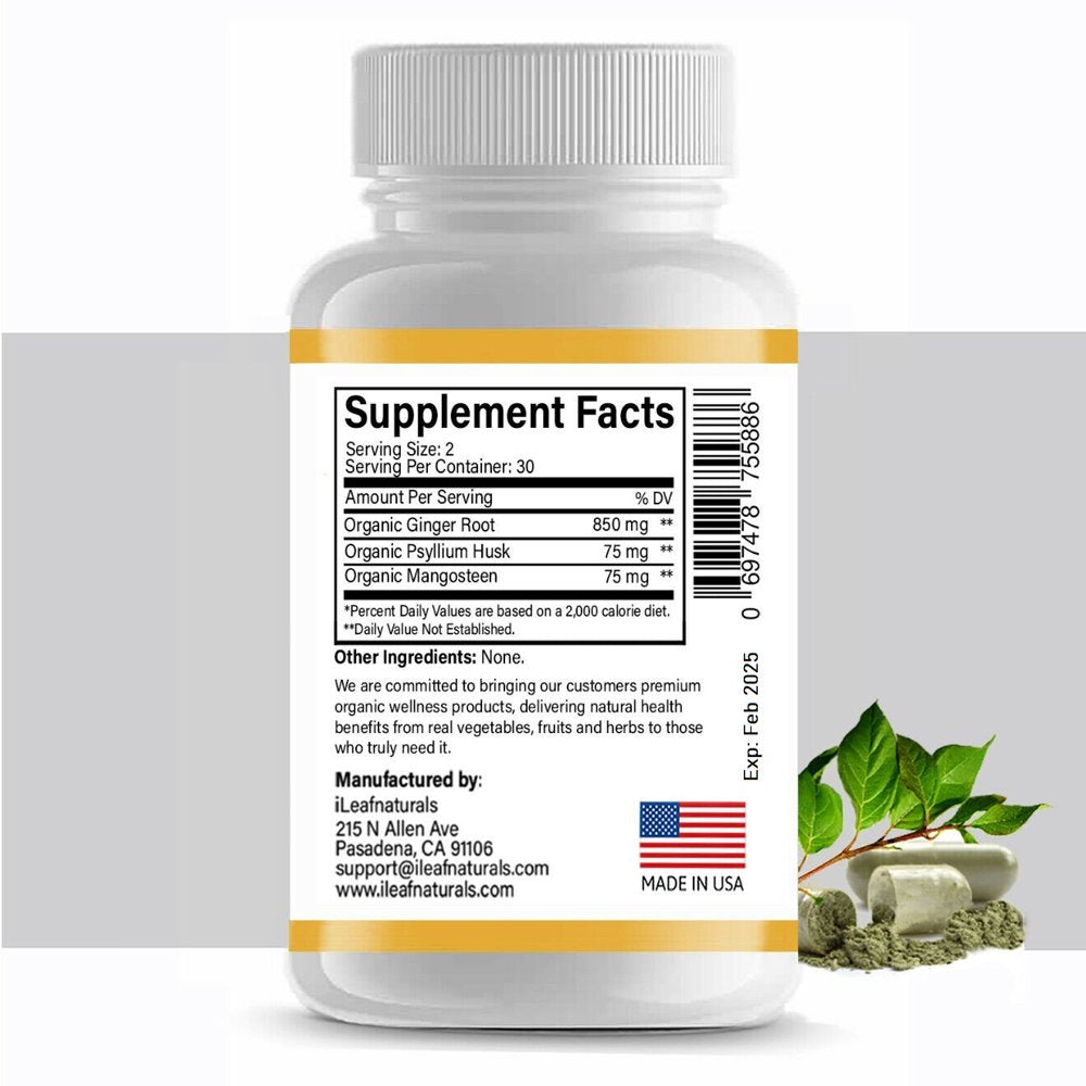 Ileaf Naturals Ginger Root with Mangosteen & Psyllium Husk - 60 Veggie Capsules