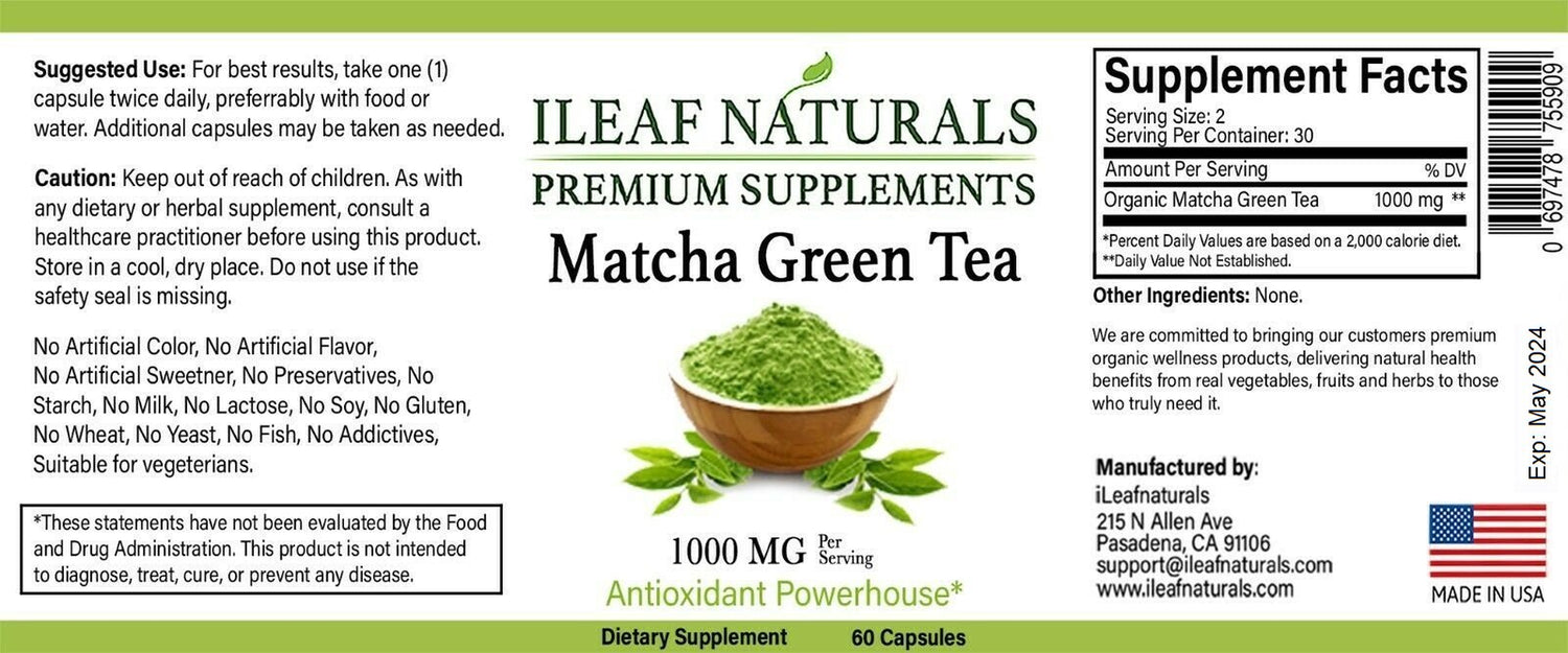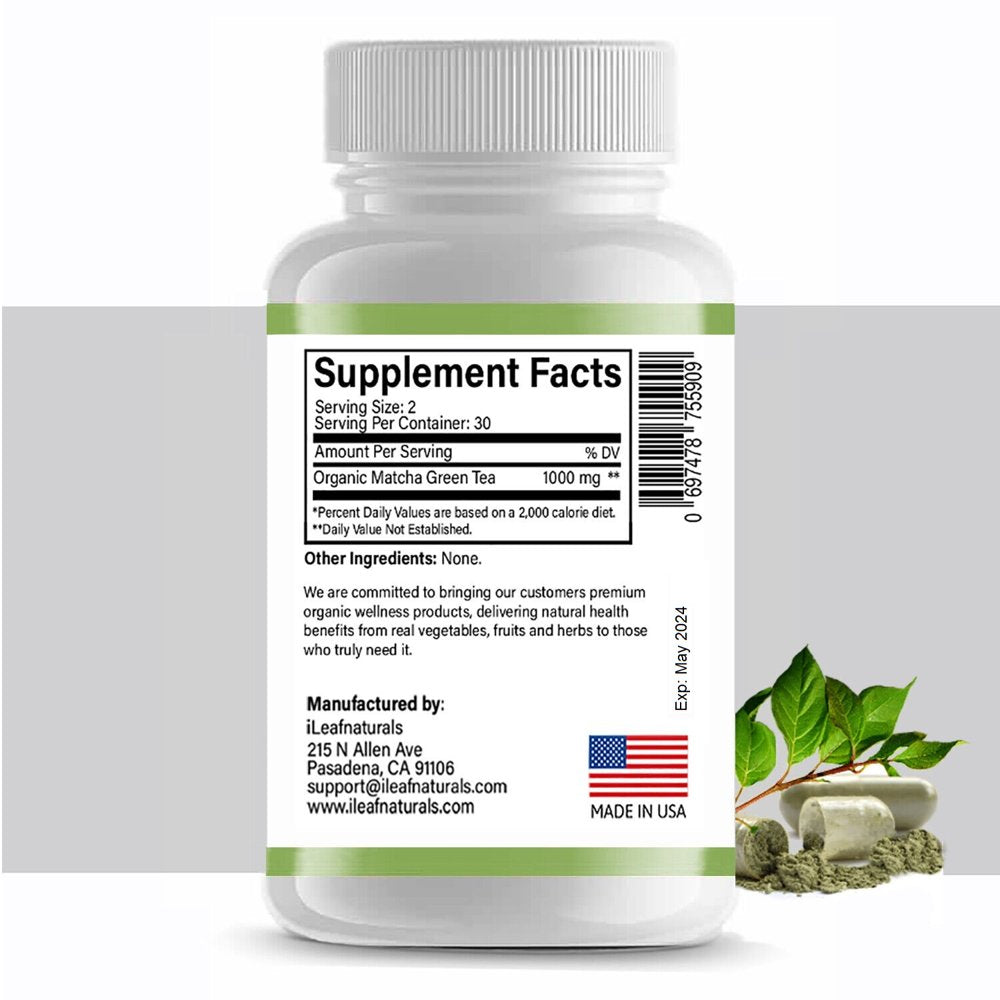 Ileaf Naturals Matcha Green Tea Ceremonial-Grade - 60 Veggie Capsules