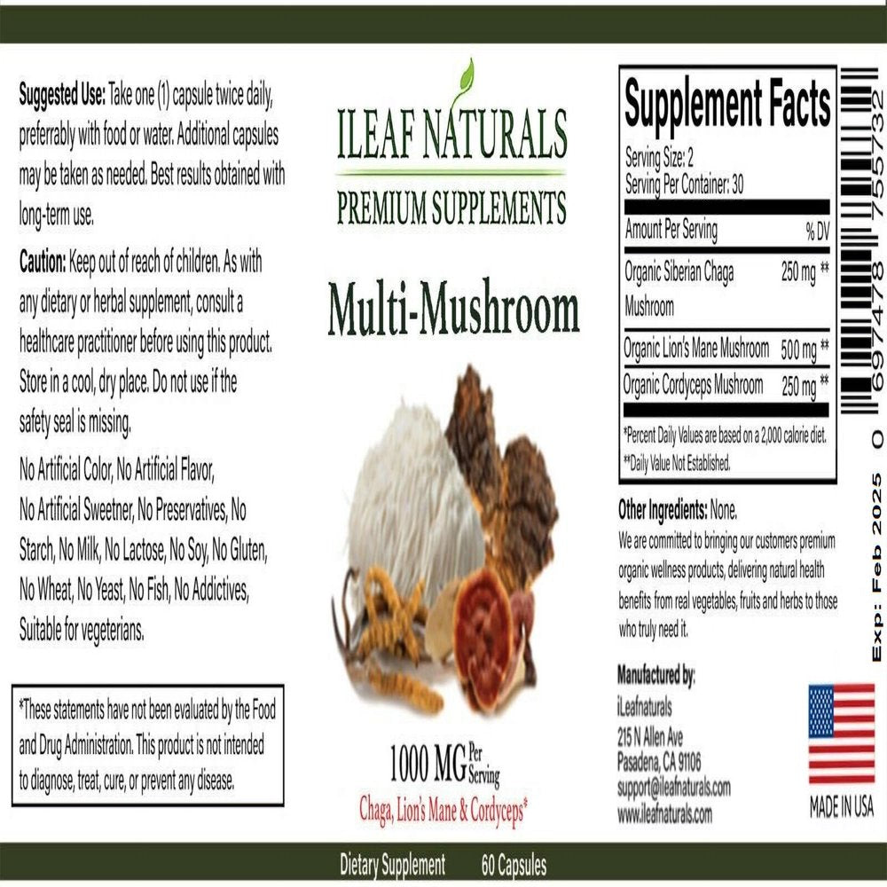 Ileaf Naturals Multi Mushroom Nootropic Blend - 60 Veggie Capsules
