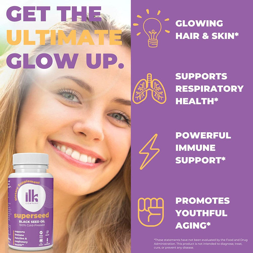 ILK Company - Pure Cold Pressed Black Seed Oil Capsules - Kalonji Oil - Nigella Sativa Black Cumin Seed - Made in the USA