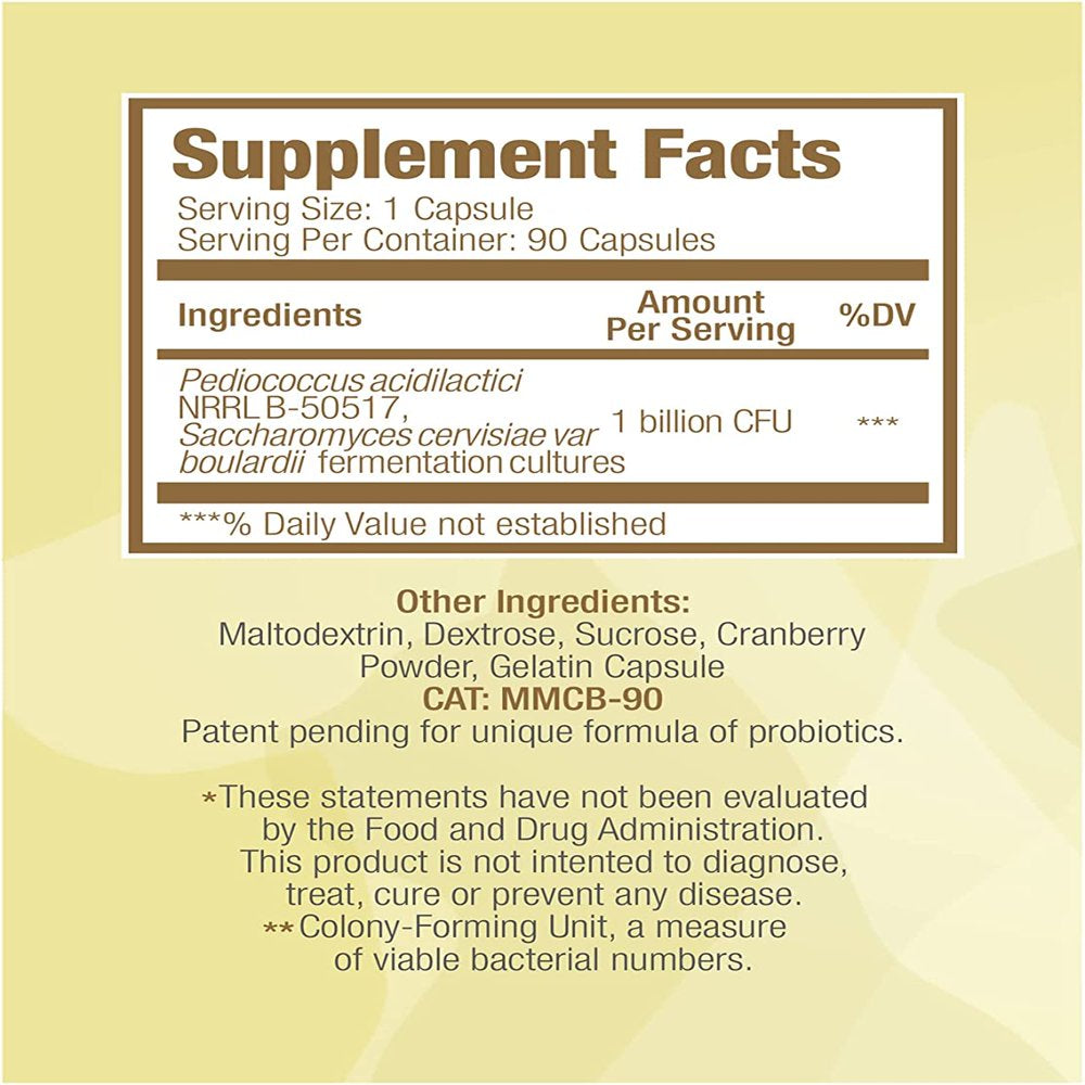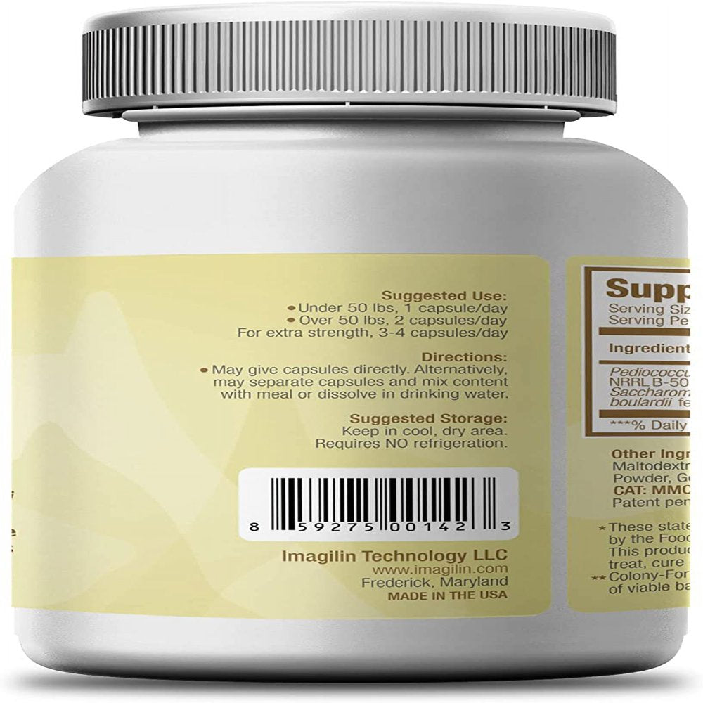 Premium Pediococcus based probiotics for supporting dog and cat’s digestive health. The products are all plant-based, non-GMO, and gluten free. Pediococcus acidilactici is widely used for fermented foods such as sausage, and has scientifically proved to be able to resistant to oxygen exposure, high temperatures up to 185°F, and the stomach’s acidic environment. The product contains encapsulated mixtures of Pediococcus acidilactici fermented cultures and Saccharomyces boulardii fermentative cultures and natural cranberry powder in a gelatin capsule. It guarantees to have 1 billion live probiotics in every dosage applied. Cranberries are widely recognized to contain several compounds which bacteria most often are responsible for urinary health issues. The product does not require refrigeration and is stable at the room temperature for two years. For pets with body weight <50 lbs, give one capsule per day; ? 50 lbs, 2 capsules per day, and for extra strength, 3-4 capsules per day. The capsule can be given directly or separate the capsule and mix content with meal/water.