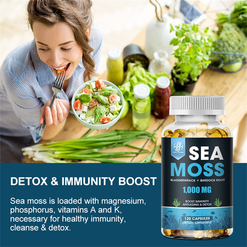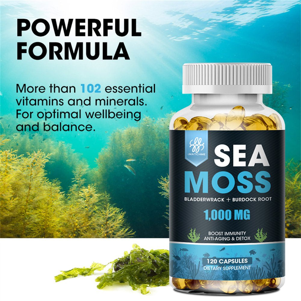 Imatchme 100% Natural Sea Moss Capsules 1000Mg Supplement - Immune System, Gut, Skin & Thyroid Support - 120 Capsules
