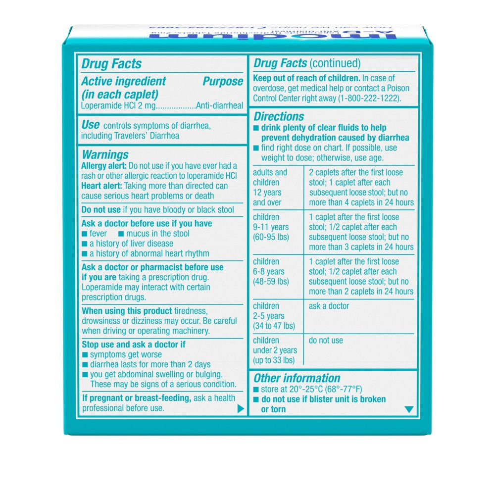 - Package of Imodium A-D Anti-Diarrheal Medicine Caplets with loperamide HCl