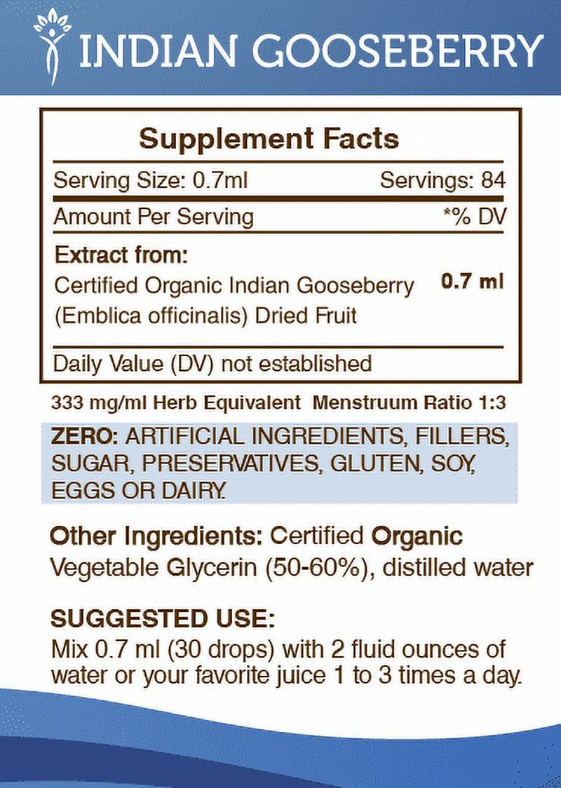 | Product Name | Indian Gooseberry Tincture Alcohol-FREE Extract, Organic Indian Gooseberry (Emblica officinalis) Dried Fruit 2 oz |