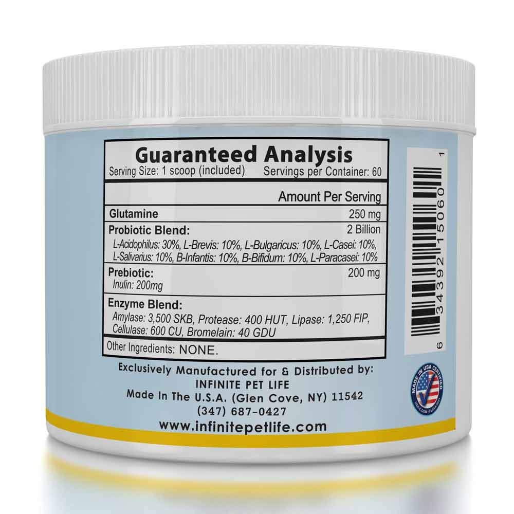 WANT THE BEST DIGESTIVE HEALTH FOR YOUR DOG? Don?t waste your time & money on low-quality products that simply don?t work. Loving pet parents choose Infinite Probiotic Formula for Dogs because we are raising the bar of premium pet supplements.