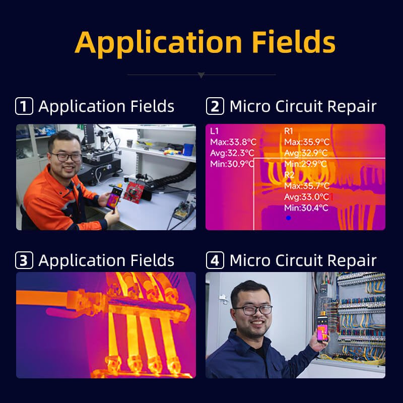 - 【Frame Rate 25HZ】The image responds quickly and does not freeze, improving yourwork efficiency 【High temperature range】Provides temperature measurements -20°C~+450°C.Measurement accuracy:±2°C or 士2% of the measuring range temperature.