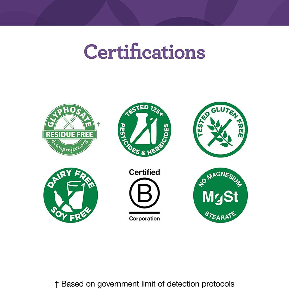 - Quality Assured: Tested for over 125 chemical substances, free of gluten, dairy, soy and magnesium stearate; Certified B Corp