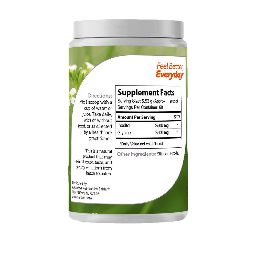 Zahler Inositol + Glycine is a combination of two foundational substances for healthy neurologic function, supporting critical roles in neurotransmitter messaging systems. In addition, Inositol and Glycine participate in the metabolism of fat in the liver as well as help promote glycogen storage, thereby making glucose readily available for energy metabolism.